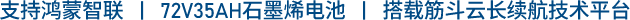 搭载筋斗云长续航技术平台, 配备72V35Ah长续航石墨烯电池,