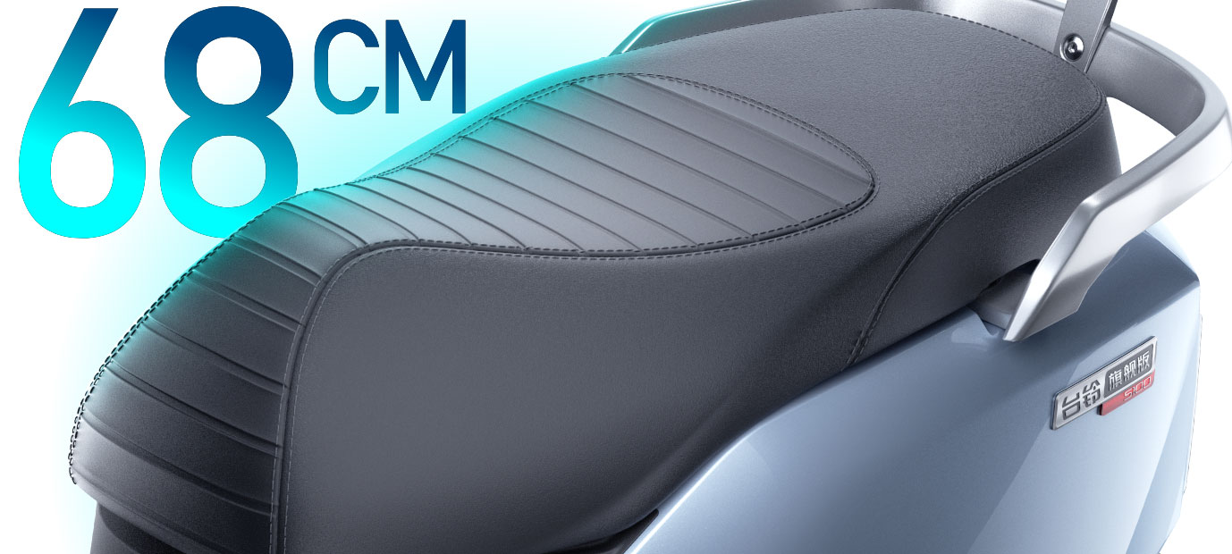 43CM加长式宽体踏板,放腿伸缩自如,轻松容纳大外卖箱,让爱车成为你的生活助手。